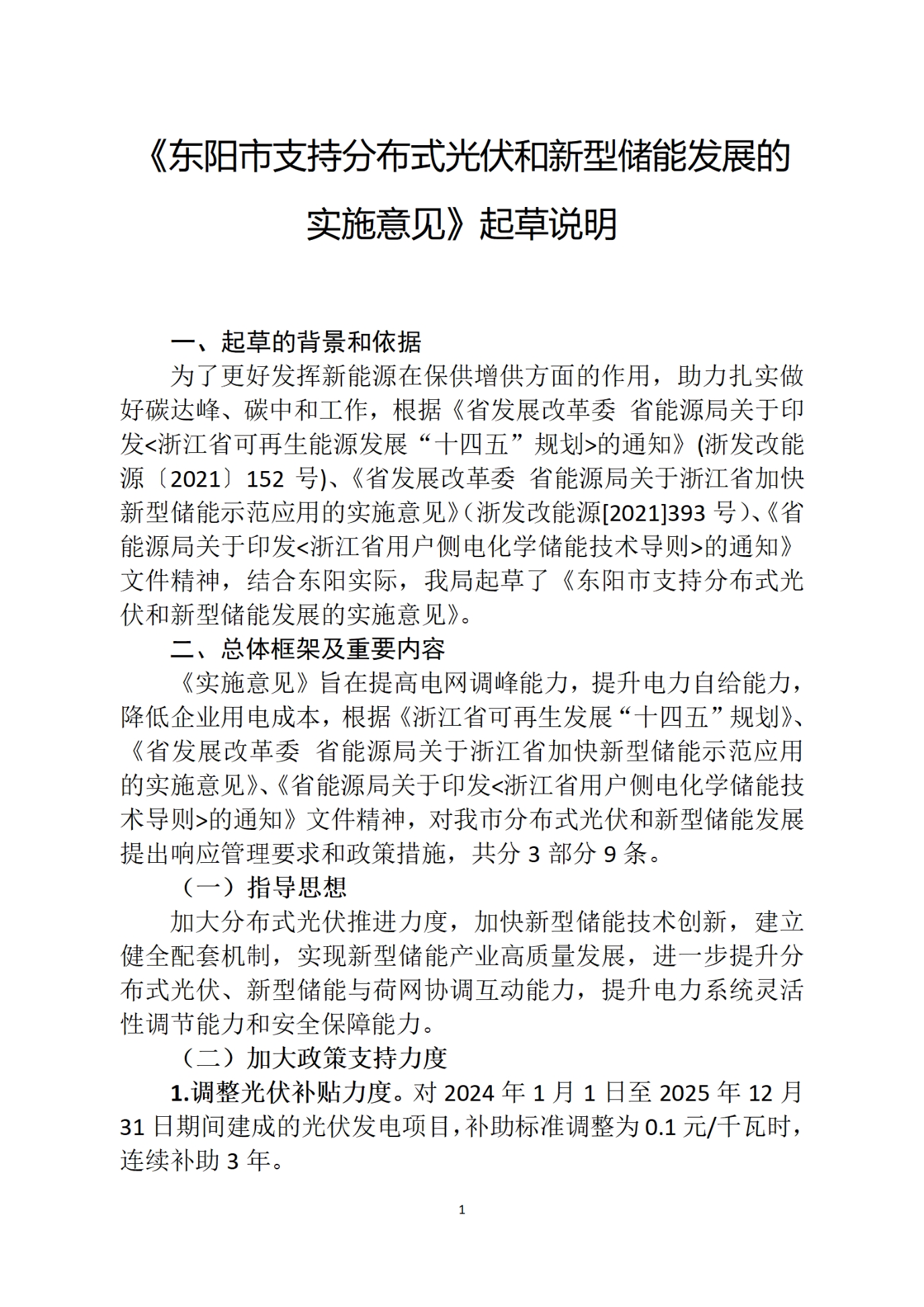 2.《東陽(yáng)市支持分布式光伏和新型儲(chǔ)能發(fā)展的實(shí)施意見(jiàn)》起草說(shuō)明(公開(kāi)征求意見(jiàn)版).docx
