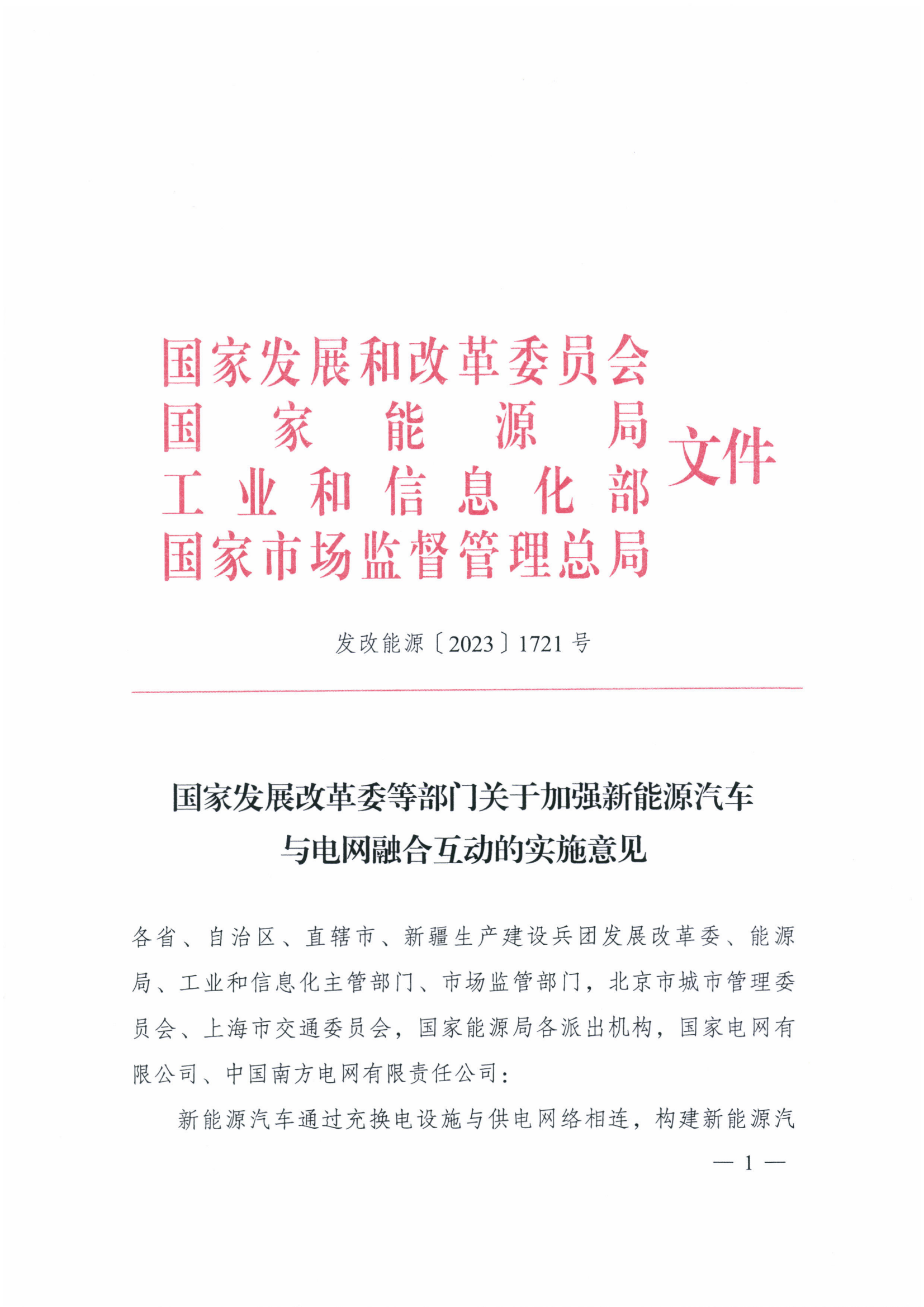 四部門(mén)聯(lián)合發(fā)布《關(guān)于加強(qiáng)新能源汽?與電網(wǎng)融合互動(dòng)的實(shí)施意?》