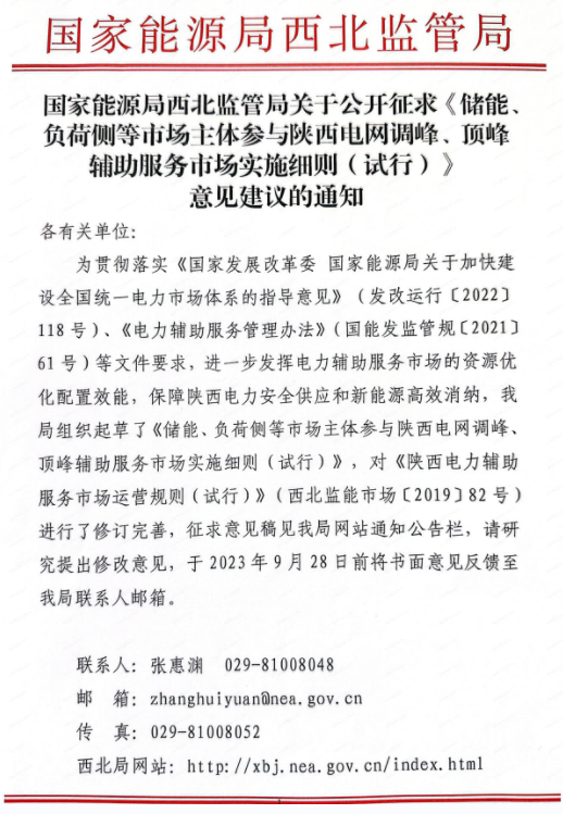 中國儲能網(wǎng)訊:8月25日,西北能監(jiān)局就《儲能、負(fù)荷側(cè)等市場主體參與陜西電網(wǎng)調(diào)峰、頂峰輔助服務(wù)市場實(shí)施細(xì)則(試行)》征求意見。細(xì)則明確,儲能調(diào)峰交易的報(bào)價(jià)0-550元/MWh,頂峰交易的報(bào)價(jià)0-1500元/MWh。