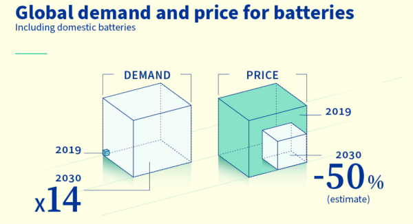歐盟預(yù)計(jì)的全球電池需求量增長(zhǎng)