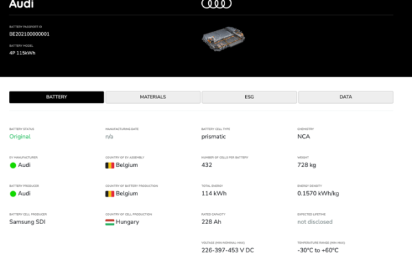 奧迪車型裝載的寧德時(shí)代電池的電子護(hù)照