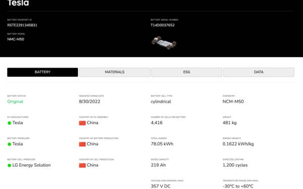 特斯拉車型裝載的LG新能源電池的電子護(hù)照