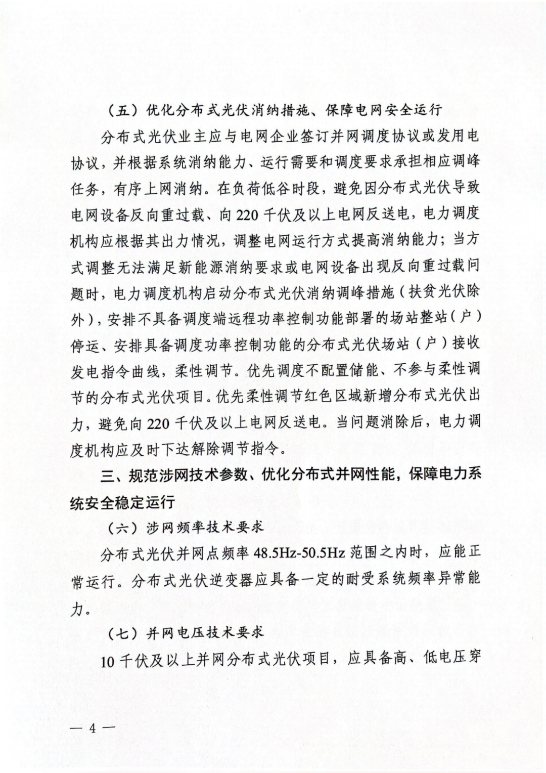 分布式光伏業(yè)主應(yīng)與電網(wǎng)企業(yè)簽訂并網(wǎng)調(diào)度協(xié)議或發(fā)用電協(xié)議,并根據(jù)系統(tǒng)消納能力、運(yùn)行需要和調(diào)度要求承擔(dān)相應(yīng)調(diào)峰任務(wù),有序上網(wǎng)消納。