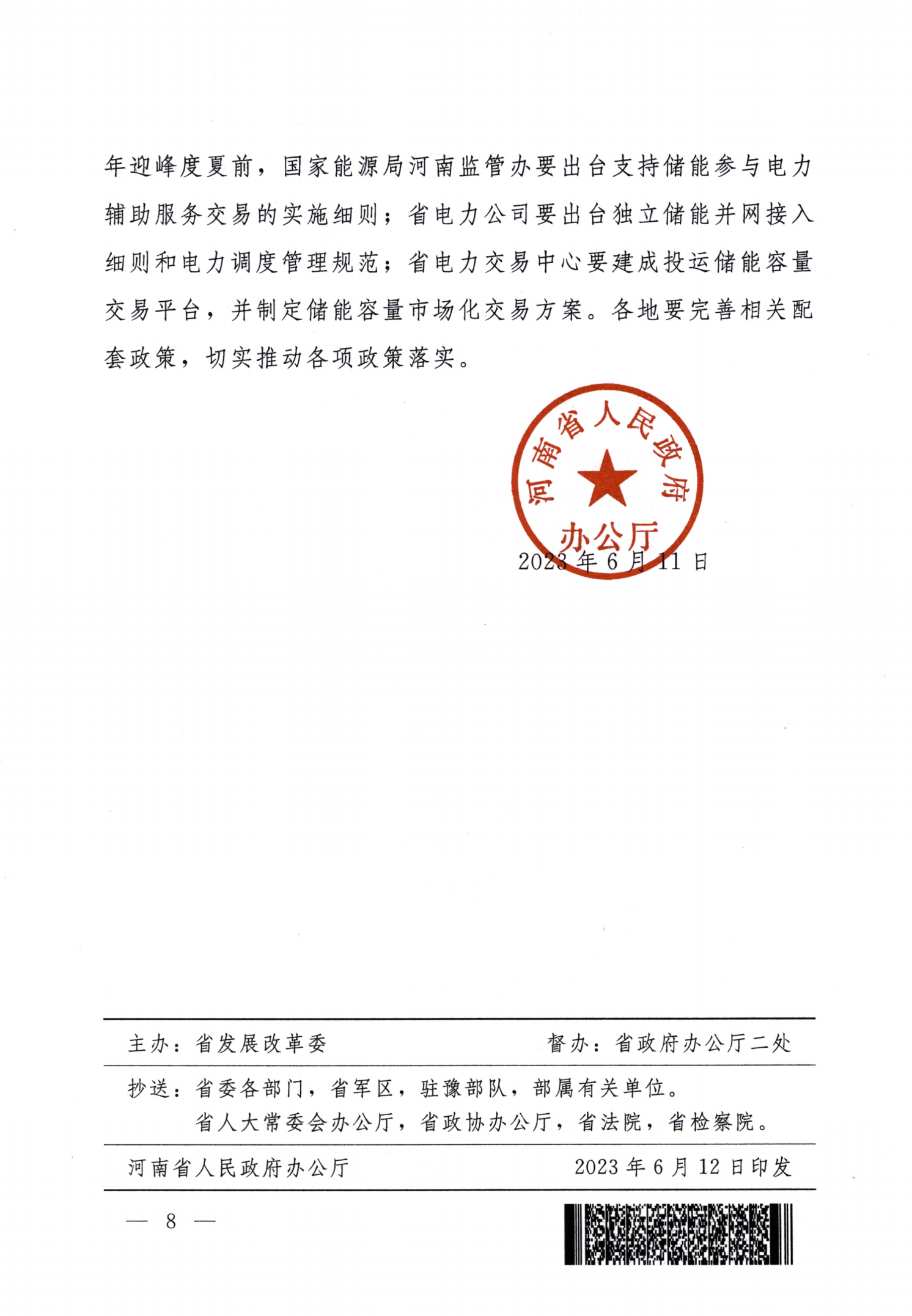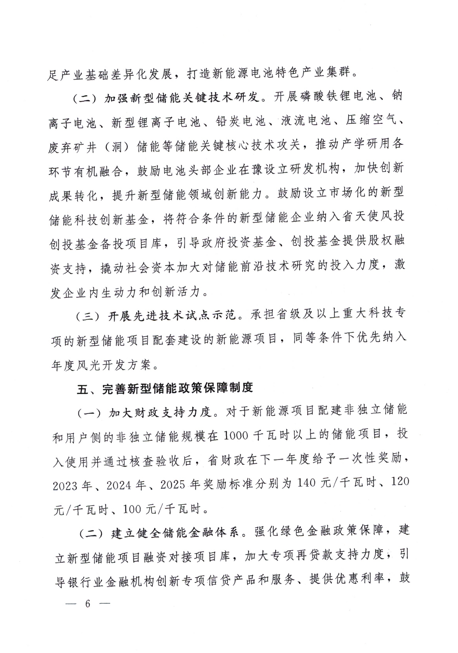 另外,除以上措施外,河南省還針對(duì)規(guī)模在1000千瓦時(shí)以上的、新能源項(xiàng)目配建非獨(dú)立儲(chǔ)能和用戶側(cè)的非獨(dú)立儲(chǔ)能,制定了財(cái)政補(bǔ)貼政策。《實(shí)施意見》指出:此類項(xiàng)目投入使用并通過核查驗(yàn)收后,省財(cái)政在下一年度給予一次性獎(jiǎng)勵(lì),2023年、2024年、2025年獎(jiǎng)勵(lì)標(biāo)準(zhǔn)分別為140元/千瓦時(shí)、120元/千瓦時(shí)、100元/千瓦時(shí)。