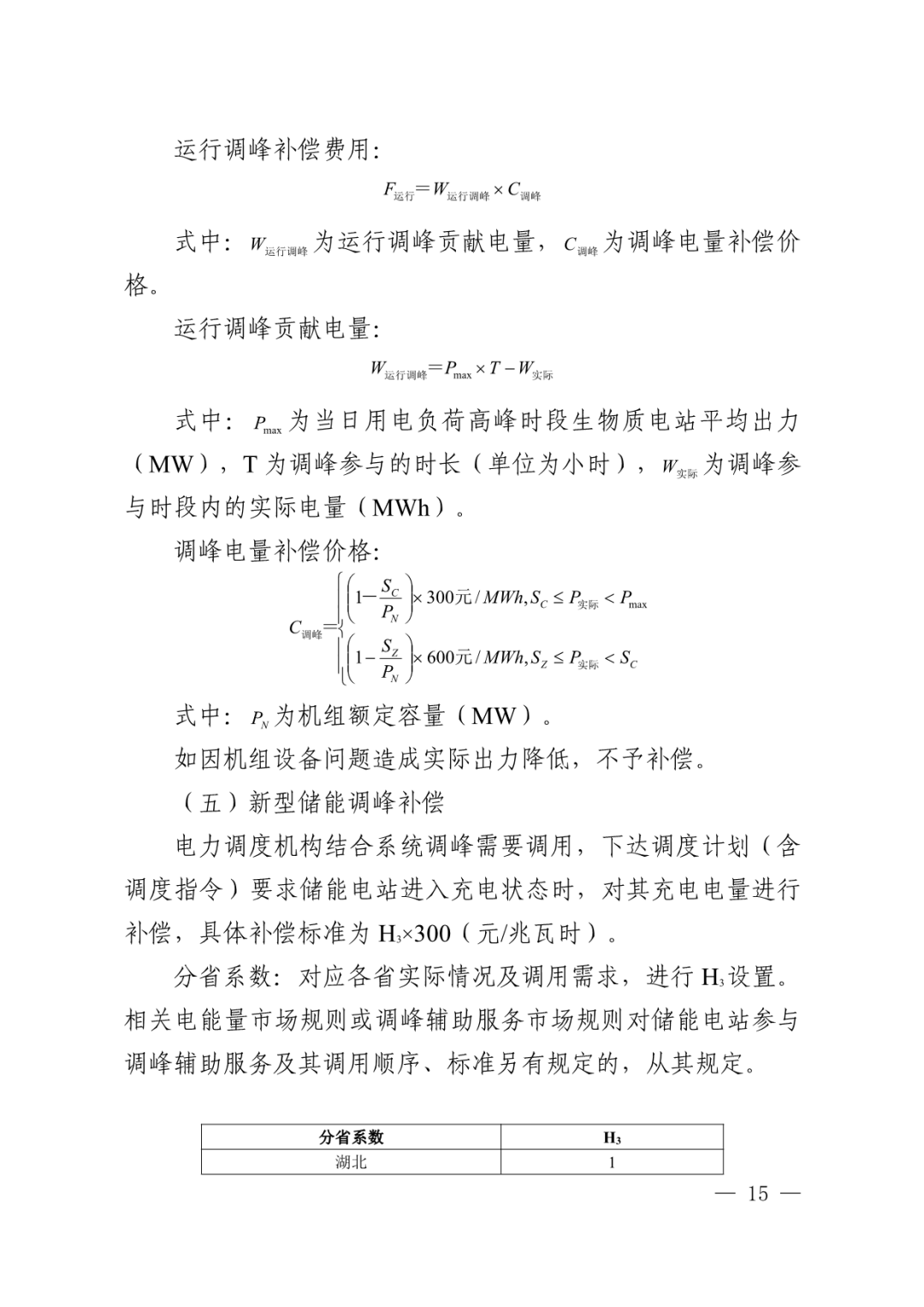 新型儲能調(diào)峰補(bǔ)償電力調(diào)度機(jī)構(gòu)結(jié)合系統(tǒng)調(diào)峰需要調(diào)用,下達(dá)調(diào)度計(jì)劃(含 調(diào)度指令)要求儲能電站進(jìn)入充電狀態(tài)時,對其充電電量進(jìn)行補(bǔ)償,具體補(bǔ)償標(biāo)準(zhǔn)為H3×300(元/兆瓦時)。