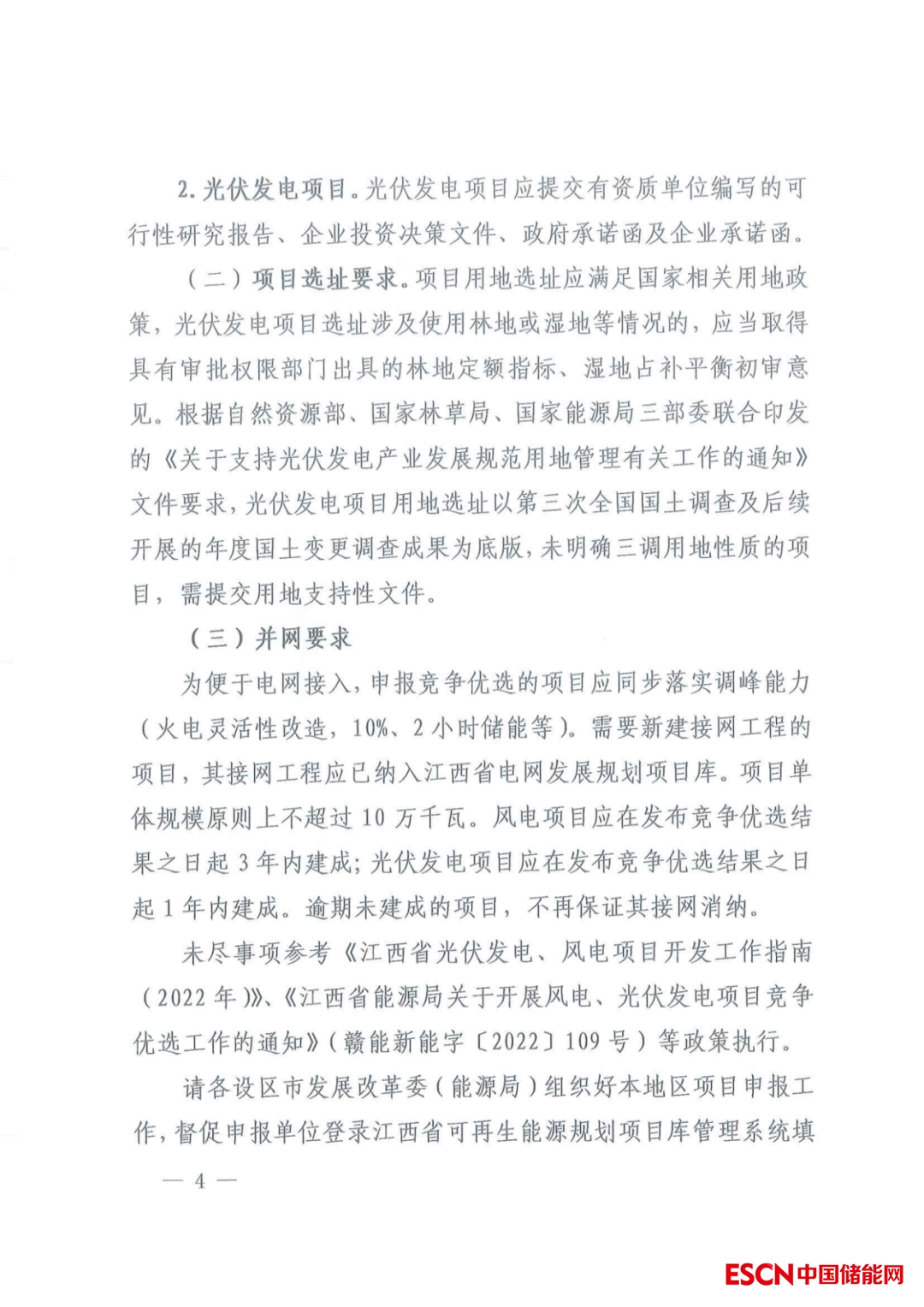 申報(bào)競(jìng)爭(zhēng)優(yōu)選的項(xiàng)目應(yīng)同步落實(shí)調(diào)峰能力 (火電靈活性改造,10%、2小時(shí)儲(chǔ)能等)。需要新建接網(wǎng)工程的項(xiàng)目,其接網(wǎng)工程應(yīng)已納入江西省電網(wǎng)發(fā)展規(guī)劃項(xiàng)目庫(kù)。