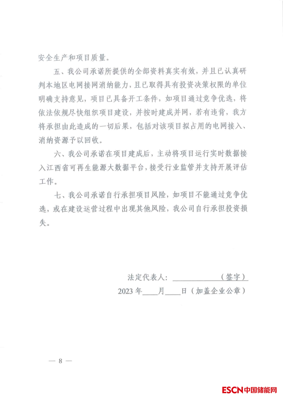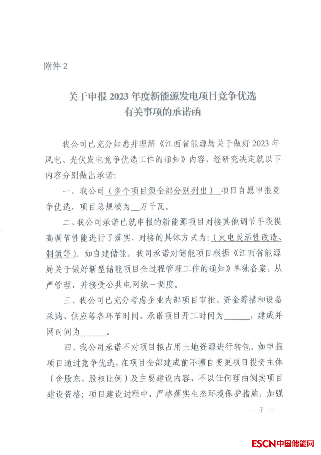 同時(shí),要求申報(bào)企業(yè)承諾作為附件:已就申報(bào)的新能源項(xiàng)目對(duì)接其他調(diào)節(jié)手段提 高調(diào)節(jié)性能進(jìn)行了落實(shí),對(duì)接的具體方式為:(火電靈活性改造、 制氫等)。如自建儲(chǔ)能,我司承諾對(duì)儲(chǔ)能項(xiàng)目根據(jù)《江西省能源 局關(guān)于做好新型儲(chǔ)能項(xiàng)目全過(guò)程管理工作的通知》單獨(dú)備案,從嚴(yán)管理,并接受公共電網(wǎng)統(tǒng)一調(diào)度。