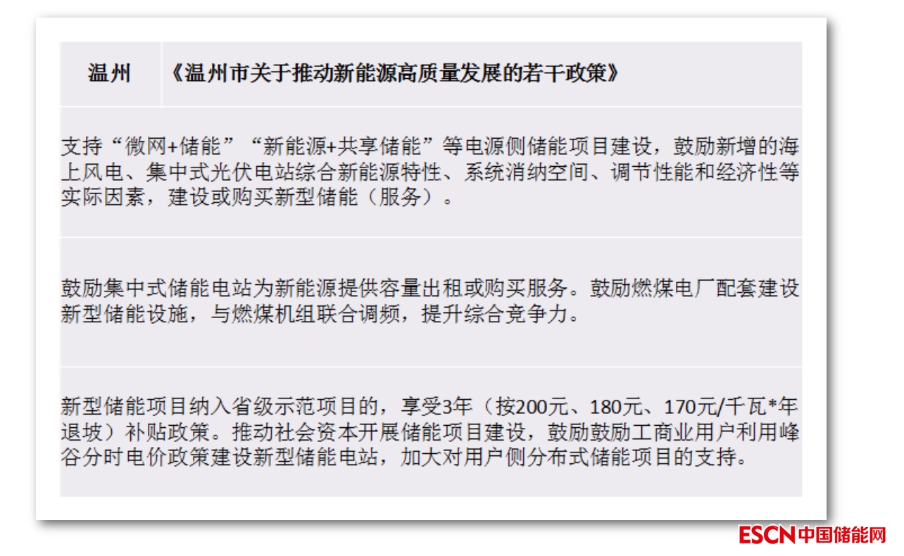 溫州市人民政府發(fā)布《溫州市關(guān)于推動(dòng)新能源高質(zhì)量發(fā)展的若干政策》(征求意見(jiàn)稿)意見(jiàn)的公告(以下簡(jiǎn)稱《意見(jiàn)稿》)。《意見(jiàn)稿》提出鼓勵(lì)儲(chǔ)能規(guī)?;瘧?yīng)用: