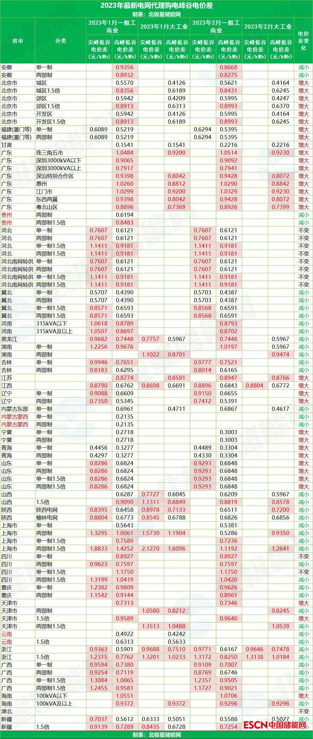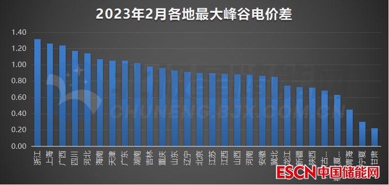中國(guó)儲(chǔ)能網(wǎng)訊:當(dāng)前,2023年2月電網(wǎng)企業(yè)代理購(gòu)電價(jià)格已經(jīng)陸續(xù)發(fā)布。根統(tǒng)計(jì),2月電網(wǎng)代購(gòu)電價(jià)格中,浙江峰谷價(jià)差為全國(guó)最高,價(jià)格為1.32元/度。23個(gè)省區(qū)峰谷電價(jià)差超過(guò)0.7元以上。