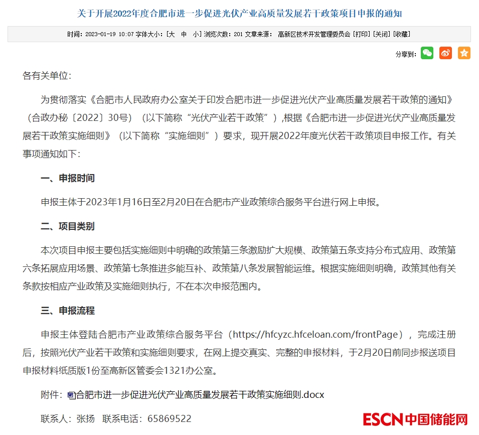 申報(bào)主體于2023年1月16日至2月20日在合肥市產(chǎn)業(yè)政策綜合服務(wù)平臺(tái)進(jìn)行網(wǎng)上申報(bào)。申報(bào)內(nèi)容包括激勵(lì)擴(kuò)大規(guī)模、支持分布式應(yīng)用、拓展應(yīng)用場(chǎng)景、推進(jìn)多能互補(bǔ)、發(fā)展智能運(yùn)維相關(guān)。其他有關(guān)條款不在本次申報(bào)范圍內(nèi)。