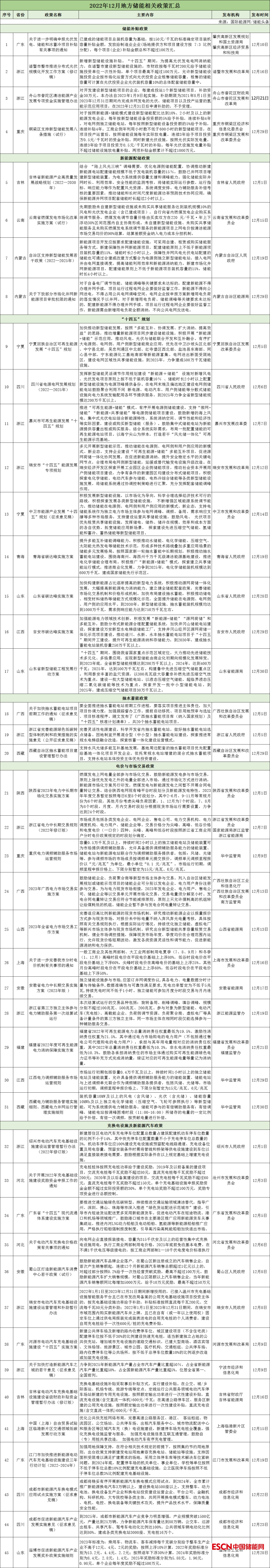 中國(guó)儲(chǔ)能網(wǎng)訊:12月份國(guó)家及地方共發(fā)布儲(chǔ)能相關(guān)政策59條!其中國(guó)家出臺(tái)政策4條,地方出臺(tái)政策55條。根據(jù)儲(chǔ)能政策的具體指向,地方政策中,儲(chǔ)能補(bǔ)貼政策4條、新能源配儲(chǔ)政策4條、抽水蓄能政策3條、儲(chǔ)能參與電力市場(chǎng)化相關(guān)政策11條、儲(chǔ)能規(guī)劃布局的政策9條、充換電及新能源汽車相關(guān)政策16條、其他相關(guān)政策8條。