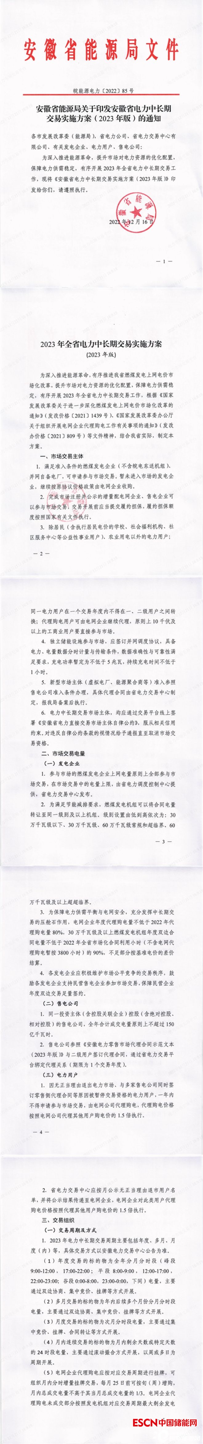 2023 年電力中長期交易周期主要包括年度、多月、月度(內(nèi))等,具體交易方式以安徽電力交易中心公告為準(zhǔn)。