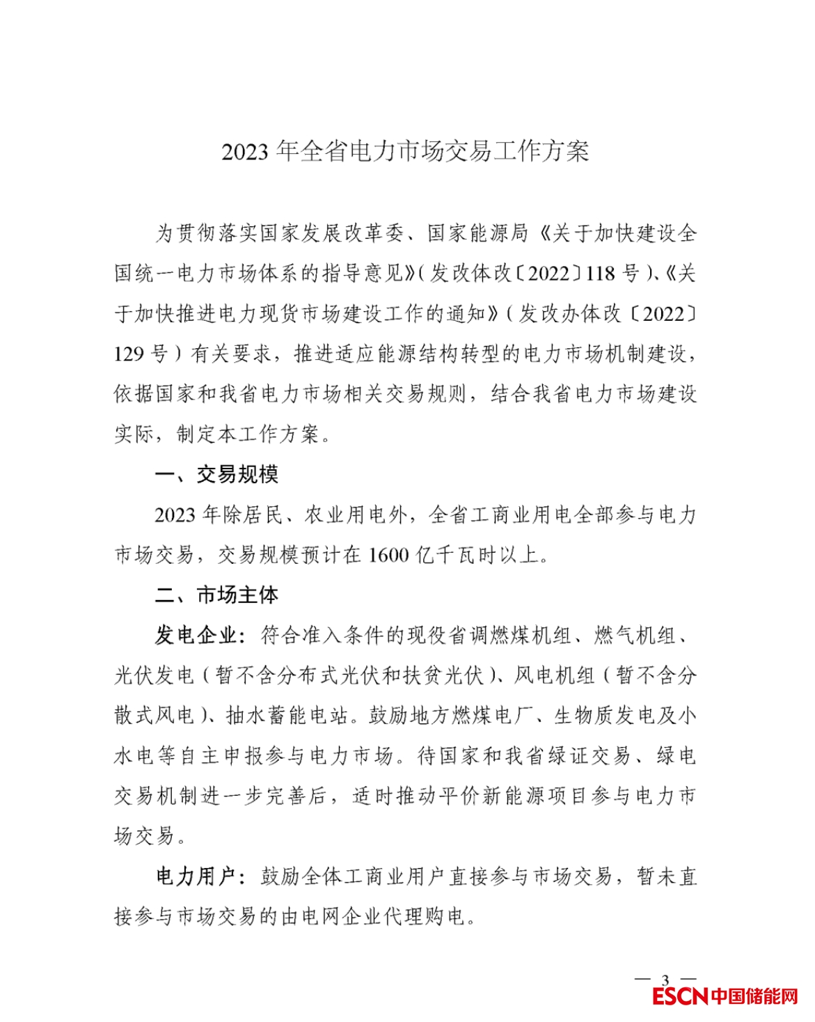 《2023年全省電力市場交易工作方案》原文如下。