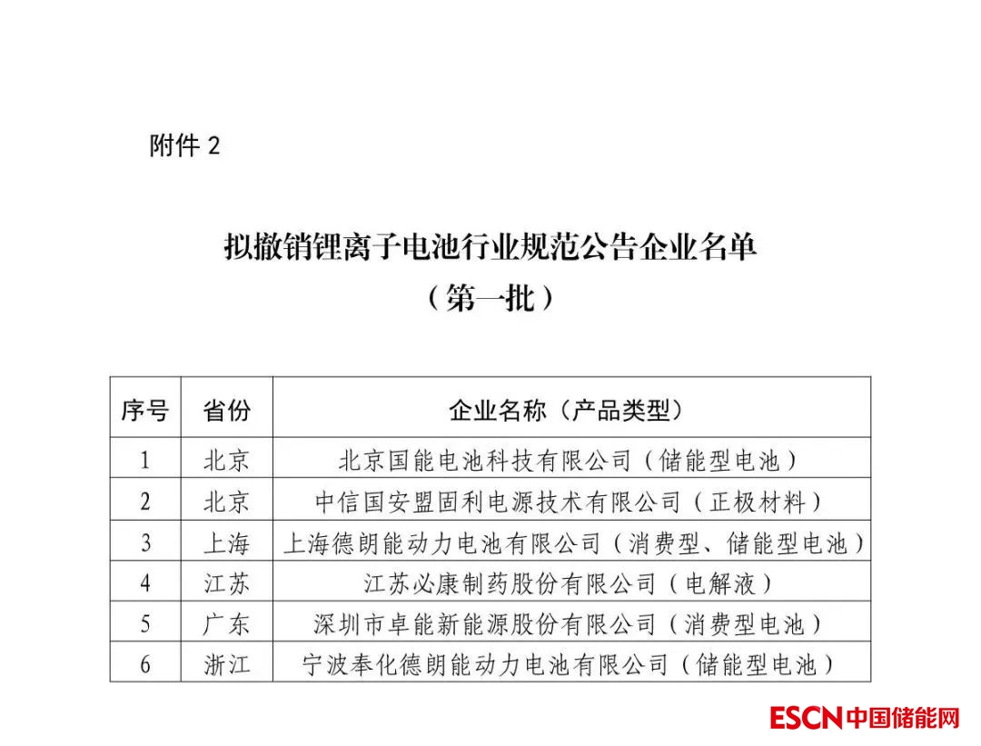 2.擬撤銷鋰離子電池行業(yè)規(guī)范公告企業(yè)名單(第一批)