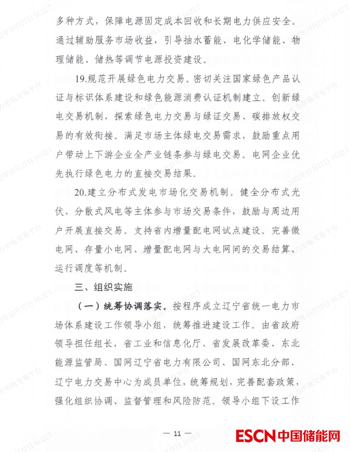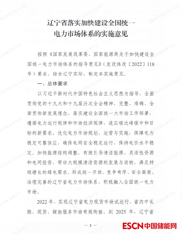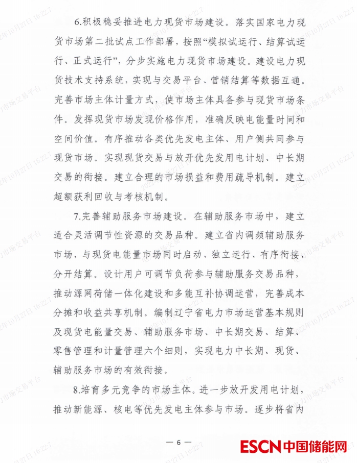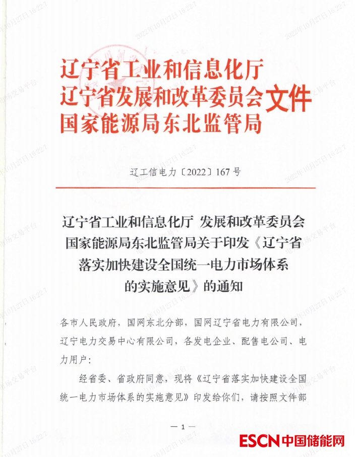 中國(guó)儲(chǔ)能網(wǎng)訊:近期,《遼寧省落實(shí)加快建設(shè)全國(guó)統(tǒng)一電力市場(chǎng)體系的實(shí)施意見》經(jīng)遼寧省委全面深化改革委員會(huì)審議通過。文件提出,建立省內(nèi)發(fā)電容量成本回收機(jī)制;通過輔助服務(wù)市場(chǎng)收益,引導(dǎo)抽水蓄能、電化學(xué)儲(chǔ)能、物理儲(chǔ)能、儲(chǔ)熱等調(diào)節(jié)電源投資建設(shè)。