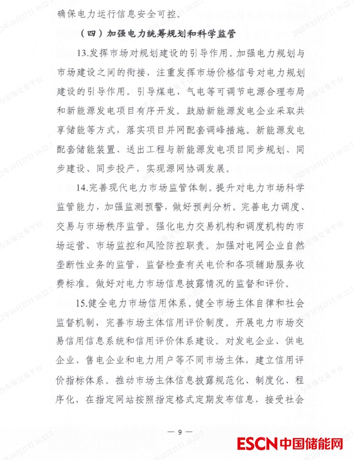 引導(dǎo)煤電、氣電等可調(diào)節(jié)電源合理布局和新能源發(fā)電項(xiàng)目有序開發(fā),鼓勵(lì)新能源發(fā)電企業(yè)采取共享儲(chǔ)能等方式,落實(shí)項(xiàng)目并網(wǎng)配套調(diào)峰措施。新能源發(fā)電配套儲(chǔ)能裝置、送出工程與新能源發(fā)電項(xiàng)目同步規(guī)劃、同步建設(shè)、同步投產(chǎn),實(shí)現(xiàn)源網(wǎng)協(xié)調(diào)發(fā)展。