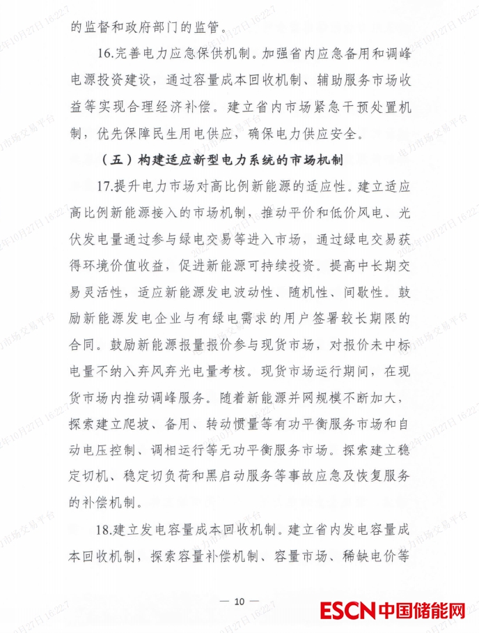 文件提出,建立省內(nèi)發(fā)電容量成本回收機(jī)制,探索容量補(bǔ)償機(jī)制、容量市場(chǎng)、稀缺電價(jià)等多種方式,保障電源固定成本回收和長(zhǎng)期電力供應(yīng)安全。通過輔助服務(wù)市場(chǎng)收益,引導(dǎo)抽水蓄能、電化學(xué)儲(chǔ)能、物理儲(chǔ)能、儲(chǔ)熱等調(diào)節(jié)電源投資建設(shè)。