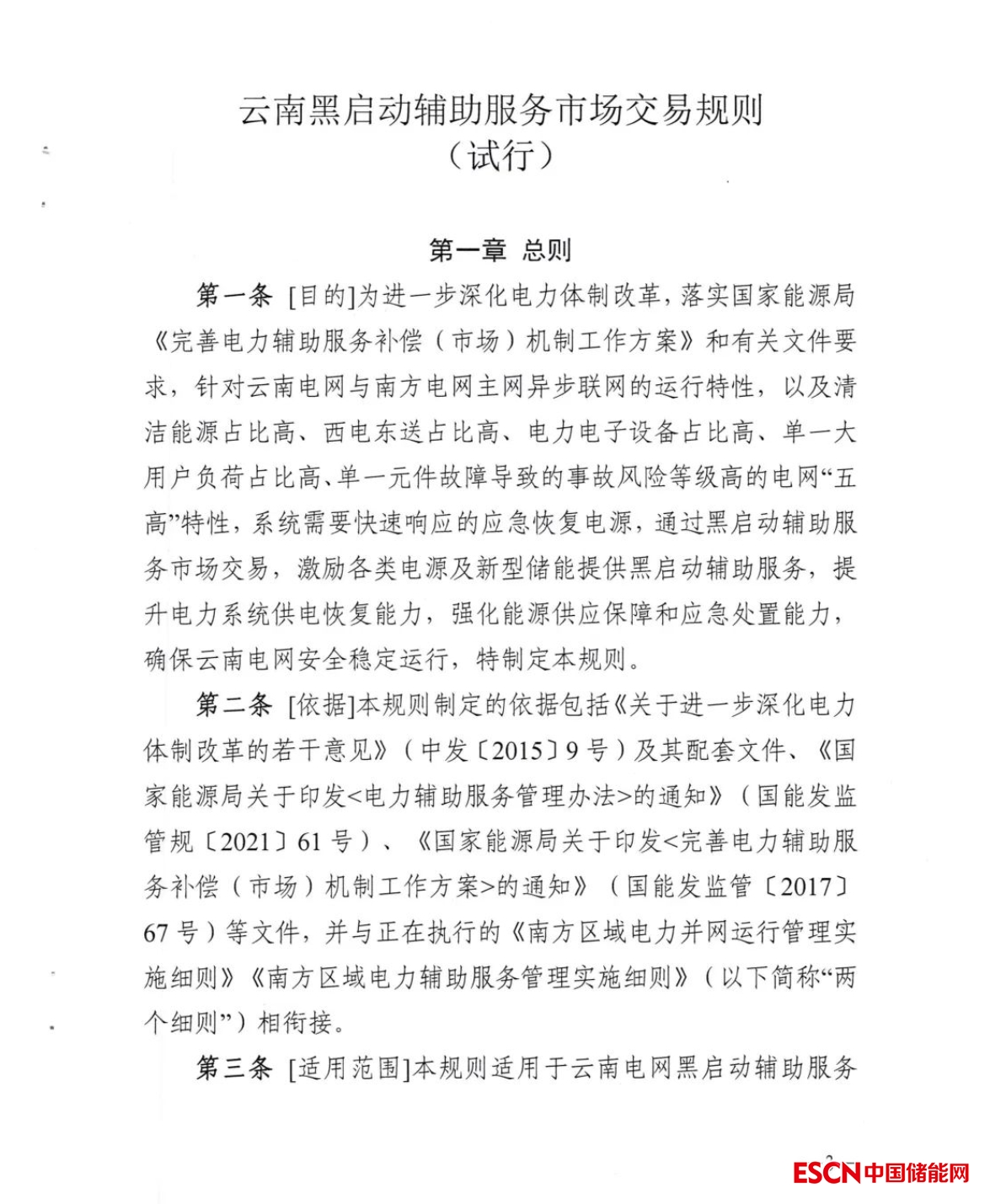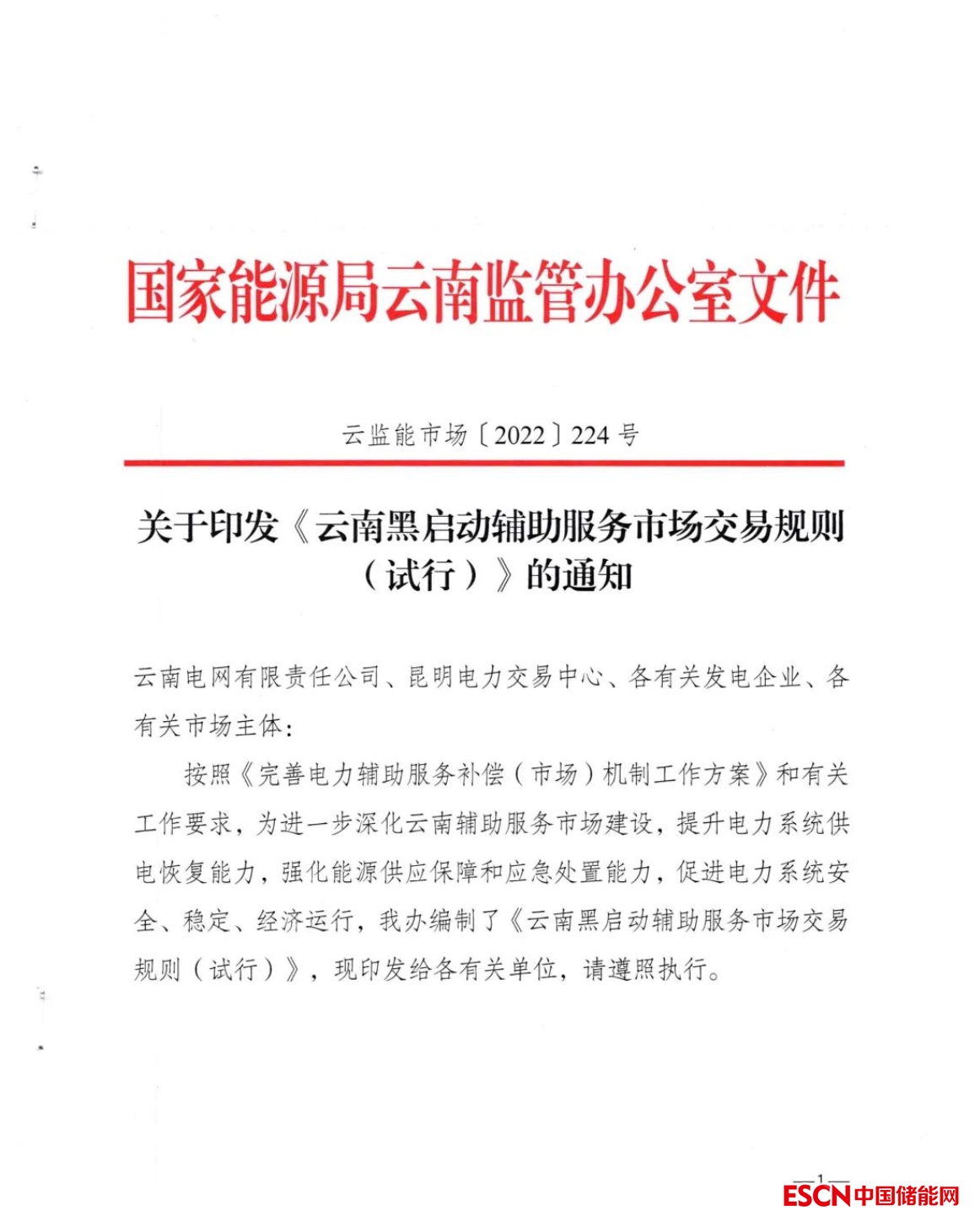 中國儲能網(wǎng)訊:10月19日,云南省能監(jiān)辦發(fā)布了《云南黑啟動輔助服務市場交易規(guī)則(試行)》(以下簡稱《交易規(guī)則》),并自印發(fā)之日起執(zhí)行此規(guī)則。