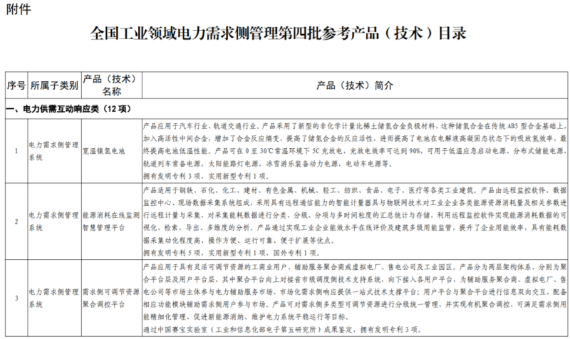 全國(guó)工業(yè)領(lǐng)域電力需求側(cè)管理第四批參考產(chǎn)品(技術(shù))目錄