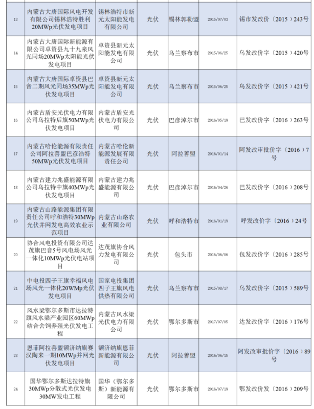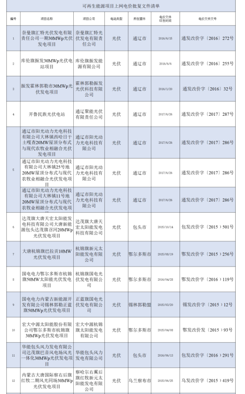 附件:可再生能源項目上網(wǎng)電價批復(fù)文件清單