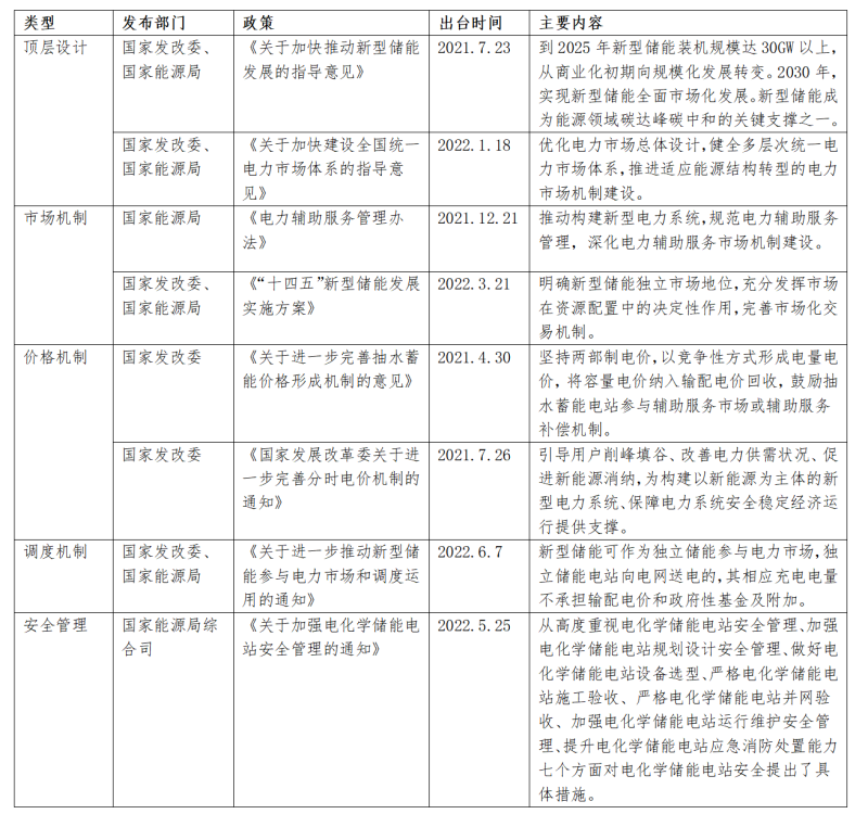 國家層面從2021年起,陸續(xù)出臺了一系列綱領性文件,從頂層設計、市場機制、價格機制、調度機制等方面為新型儲能建設高速發(fā)展插上“翅膀”。