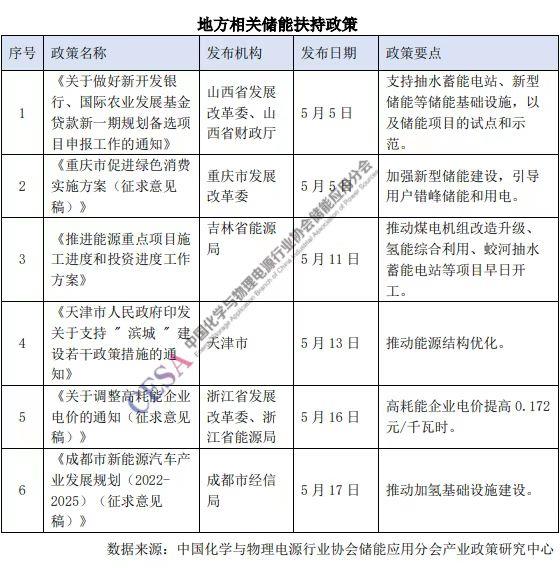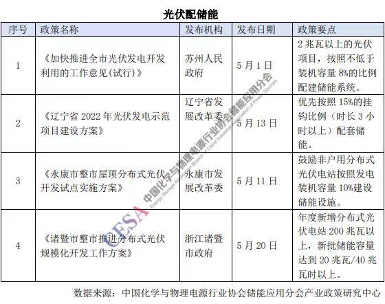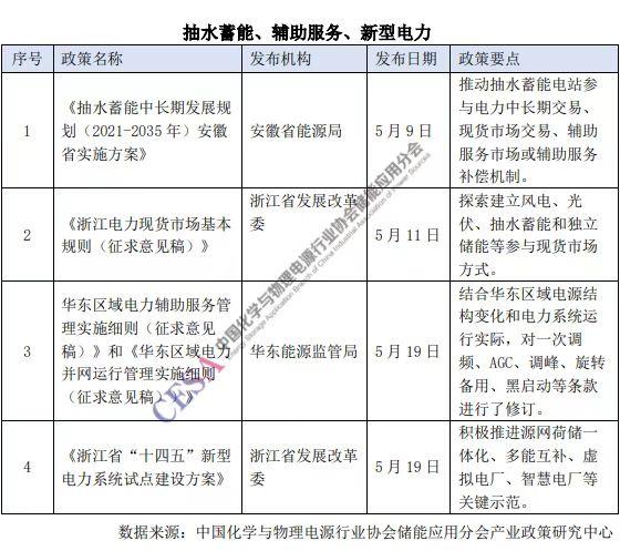 5月儲(chǔ)能相關(guān)政策共計(jì)22項(xiàng),主要涉及儲(chǔ)能電站安全、“十四五”能源規(guī)劃、儲(chǔ)能試點(diǎn)示范項(xiàng)目、抽水蓄能、輔助服務(wù)、新型電力、新能源配儲(chǔ)能,以及地方相關(guān)儲(chǔ)能扶持政策等方面。