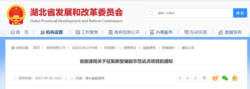 中國儲能網(wǎng)訊:4月28日,湖北省能源局發(fā)布征集新型儲能示范試點項目的通知。