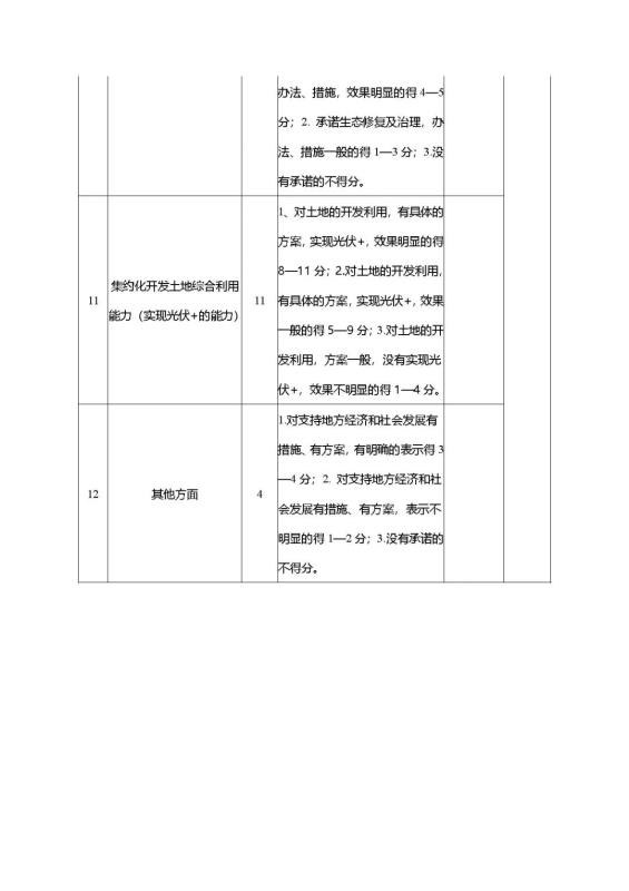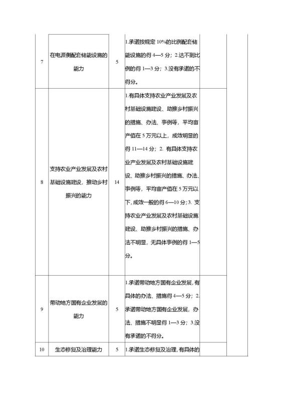 (二)公開招商工作流程:企業(yè)對照本公告第三條要求報名,填報,并在約定時間內(nèi)提交相關(guān)材料。經(jīng)我方組織相關(guān)部門,按照評分細則(文山市新能源資源配置重點考量指標表),對投資企業(yè)的整體實力、經(jīng)濟產(chǎn)業(yè)發(fā)展的貢獻、制定環(huán)境保護措施等因素進行綜合評分,按一定程序報批后,最終確定1—2家企業(yè)為項目業(yè)主,簽訂正式的投資協(xié)議。