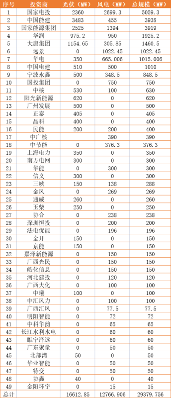 電源項(xiàng)目推進(jìn)計(jì)劃表匯總顯示,共包括29.38GW的風(fēng)光項(xiàng)目,其中光伏16.6GW、風(fēng)電12.76GW。根據(jù)業(yè)主梳理情況來看,國(guó)家電投、中國(guó)能建、國(guó)家能源集團(tuán)分別以5.06GW、3.94GW、3.92GW的規(guī)模位列前三。