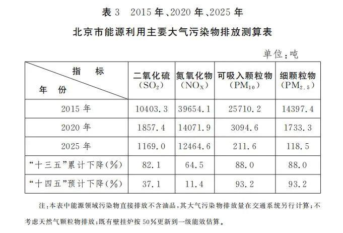 表3 2015年、2020年、2025年 北京市能源利用主要大氣污染物排放測(cè)算表