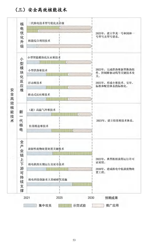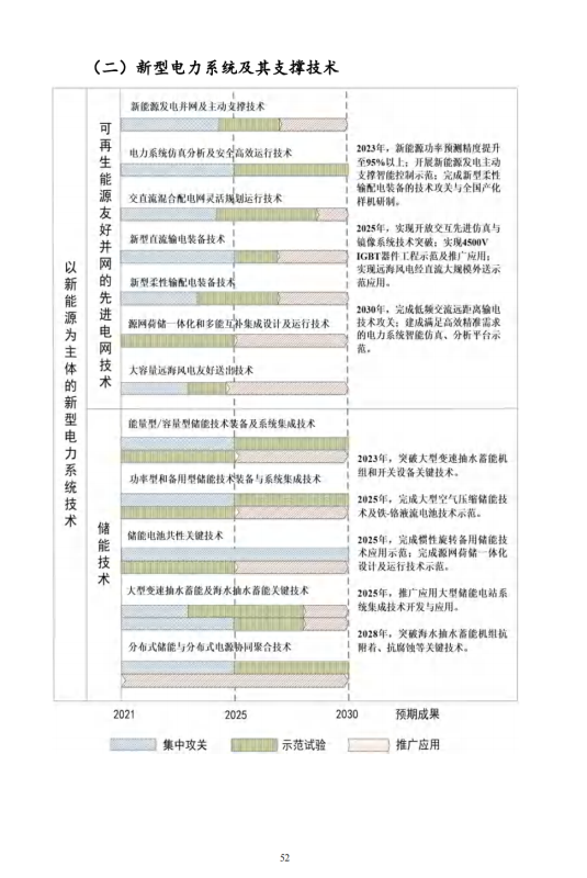 《規(guī)劃》發(fā)布了先進(jìn)可再生能源發(fā)電及綜合利用技術(shù)、新型電力系統(tǒng)及其支撐技術(shù)、安全高效核能技術(shù)、綠色高效化石能源開發(fā)利用技術(shù)、能源系統(tǒng)數(shù)字化智能化技術(shù)五大技術(shù)路線圖。