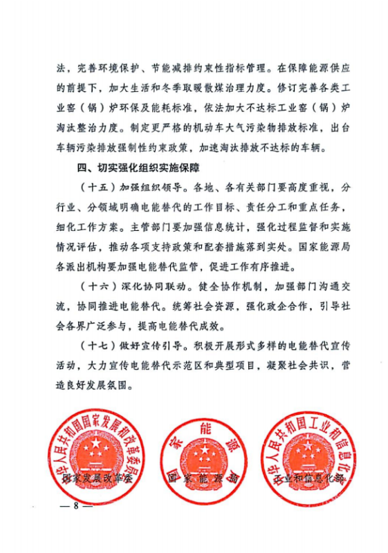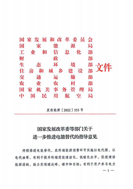 中國儲(chǔ)能網(wǎng)訊:3月9日,國家發(fā)展改革委、國家能源局、工業(yè)和信息化部、財(cái)政部、生態(tài)環(huán)境部、住房城鄉(xiāng)建設(shè)部、交通運(yùn)輸部、農(nóng)業(yè)農(nóng)村部、國家機(jī)關(guān)事務(wù)管理局、中國民用航空局等10部門聯(lián)合印發(fā)《關(guān)于進(jìn)一步推進(jìn)電能替代的指導(dǎo)意見》,意見提出: