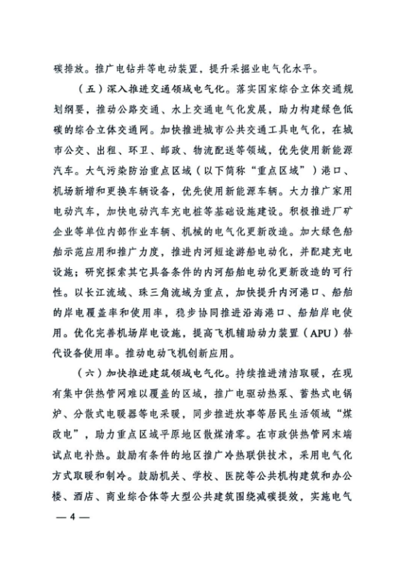 鼓勵(lì)有條件的地區(qū)推廣冷熱聯(lián)供技術(shù),采用電氣化方式取暖和制冷。鼓勵(lì)機(jī)關(guān)、學(xué)校、醫(yī)院等公共機(jī)構(gòu)建筑和辦公樓、酒店、商業(yè)綜合體等大型公共建筑圍繞減破提效,實(shí)施電氣化改造。充分利用自有屋頂、場(chǎng)地等資源條件,不斷擴(kuò)大自發(fā)自用的新能源開發(fā)規(guī)模,提高終端用能中的綠色電力比重。