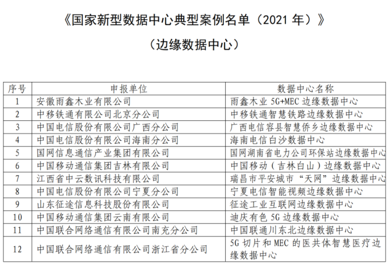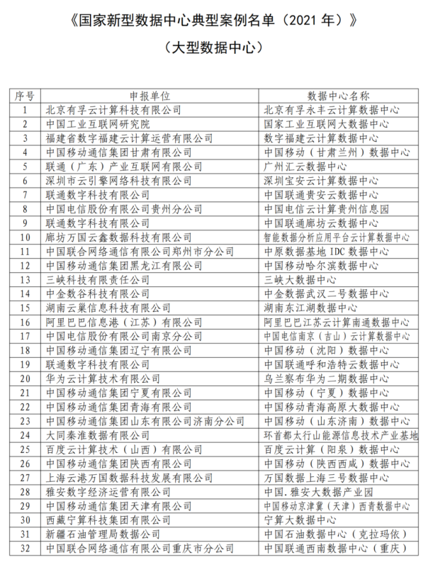 下附:國家新型數(shù)據(jù)中心典型案例名單(2021年)