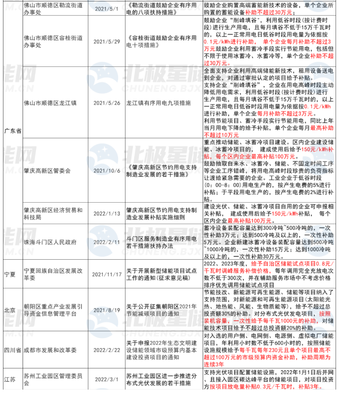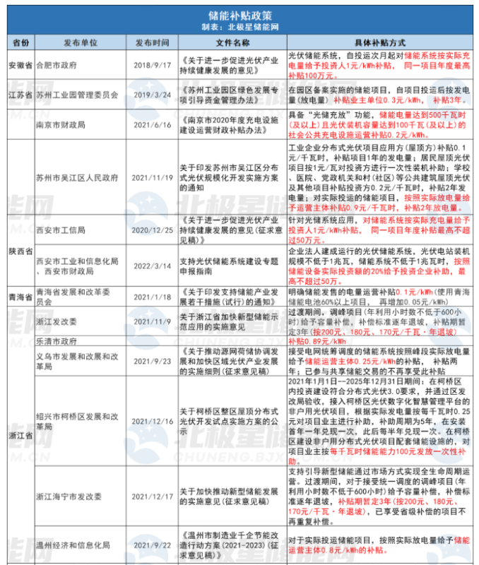 截止到目前共有20省市明確提出來(lái)儲(chǔ)能補(bǔ)貼。