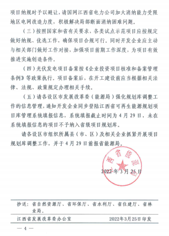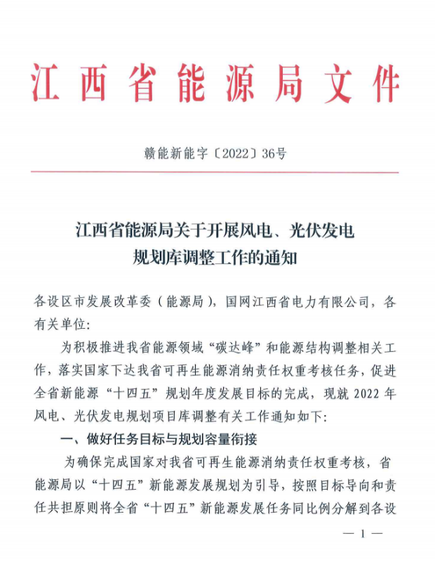 此外,通知還指出,請(qǐng)各設(shè)區(qū)市組織所屬縣(市、區(qū))及相關(guān)企業(yè)抓緊開展項(xiàng)目規(guī)劃庫調(diào)整工作,并于4月29日前報(bào)江西省能源局。
