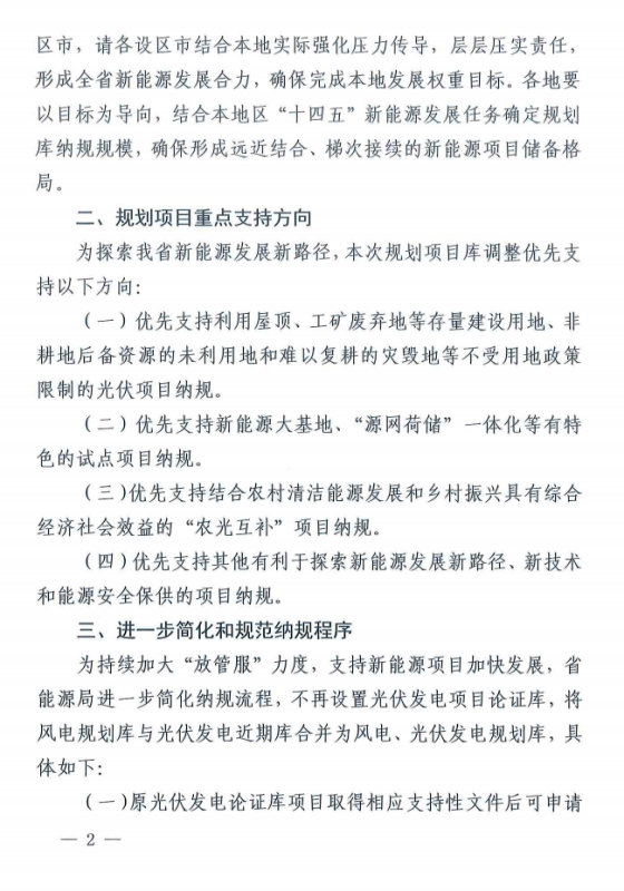 通知明確,為持續(xù)加大“放管服”力度,支持新能源項(xiàng)目加快發(fā)展,省能源局進(jìn)一步簡化納規(guī)流程,不再設(shè)置光伏發(fā)電項(xiàng)目論證庫,將風(fēng)電規(guī)劃庫與光伏發(fā)電近期庫合并為風(fēng)電、光伏發(fā)電規(guī)劃庫,具體如下: