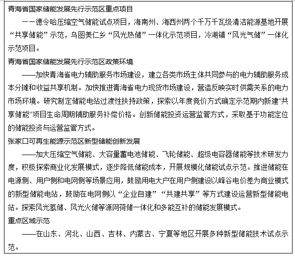 加快重點區(qū)域試點示范。積極開展區(qū)域性儲能示范區(qū)建設,鼓勵各地因地制宜開展新型儲能政策機制改革試點,推動重點區(qū)域新型儲能試點示范項目建設。結合以沙漠、戈壁、荒漠地區(qū)為重點的大型風電光伏基地建設開展新型儲能試點示范;加快青海省國家儲能發(fā)展先行示范區(qū)建設;加強河北、廣東、福建、江蘇等地首批科技創(chuàng)新(儲能)試點示范項目跟蹤評估;統(tǒng)籌推進張家口可再生能源示范區(qū)新型儲能發(fā)展。鼓勵各地在具備先進技術、人才隊伍和資金支持的前提下,大膽先行先試,開展技術創(chuàng)新、模式創(chuàng)新以及體制機制創(chuàng)新試點示范和應用。