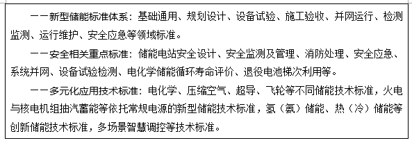 加快制定安全相關標準。針對不同技術路線的新型儲能設施,研究制定覆蓋電氣安全、組件安全、電磁兼容、功能安全、網(wǎng)絡安全、能量管理、運輸安全、安裝安全、運行安全、退役管理等全方位安全標準。加快制定電化學儲能模組/系統(tǒng)安全設計和評測、電站安全管理和消防滅火等相關標準。細化儲能電站接入電網(wǎng)和應用場景類型,完善接入電網(wǎng)系統(tǒng)的安全設計、測試驗收、應急管理等標準。