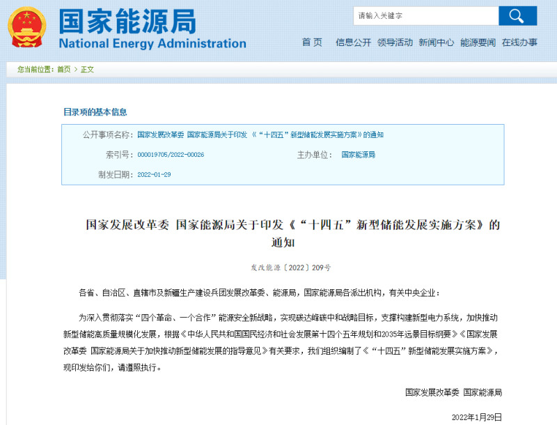 國家發(fā)展改革委 國家能源局關于印發(fā)《“十四五”新型儲能發(fā)展實施方案》的通知