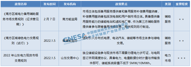 本月,山東能監(jiān)辦、發(fā)改委、能源局聯(lián)合印發(fā)《關(guān)于做好2022年山東省電力現(xiàn)貨市場結(jié)算試運(yùn)行有關(guān)工作的通知》,并公布2022版山東電力現(xiàn)貨市場交易規(guī)則,新增獨(dú)立儲(chǔ)能設(shè)施參與市場要求、容量補(bǔ)償機(jī)制、結(jié)算原則。獨(dú)立儲(chǔ)能設(shè)施參與現(xiàn)貨市場不需要辦理電力許可證,與電網(wǎng)簽訂并網(wǎng)調(diào)度協(xié)議即可,儲(chǔ)能系統(tǒng)容量不低于5MW/10MWh。2月山東共有四家儲(chǔ)能設(shè)施注冊成功進(jìn)入現(xiàn)貨市場,這四家均為山東首批儲(chǔ)能示范項(xiàng)目,分別是海陽國電投儲(chǔ)能科技、華電滕州新源熱電、三峽新能源(慶云)、華能濟(jì)南黃臺。