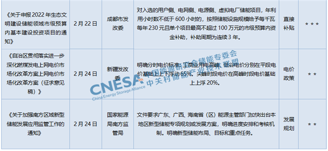 中國儲(chǔ)能網(wǎng)訊:2月儲(chǔ)能政策從國家到地方共有30余項(xiàng)發(fā)布或征求意見,涉及頂層規(guī)劃、直接補(bǔ)貼、示范項(xiàng)目征集、現(xiàn)貨市場、輔助服務(wù)市場等方面,中關(guān)村儲(chǔ)能產(chǎn)業(yè)技術(shù)聯(lián)盟對本月儲(chǔ)能政策進(jìn)行了梳理解讀,希望與業(yè)界同仁共同交流探討。