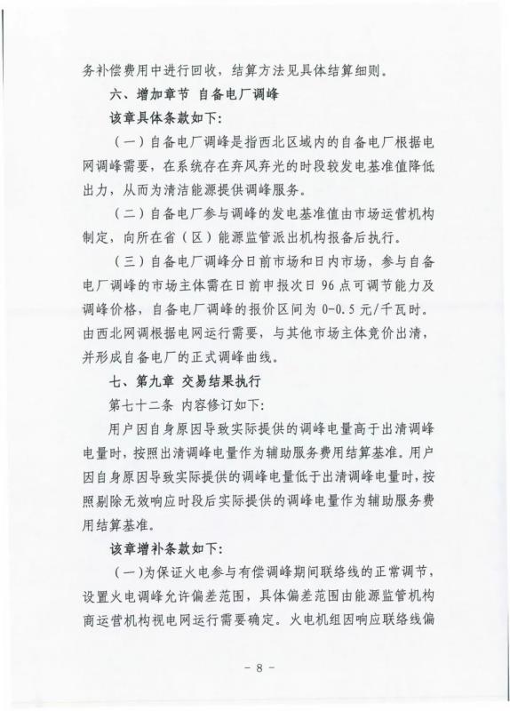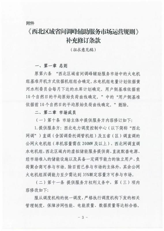 中國儲能網(wǎng)訊:3月2日,國家能源局西北監(jiān)管局發(fā)布關(guān)于公開征求《西北區(qū)域省間調(diào)峰輔助服務(wù)市場運營規(guī)則》補充修訂條款(征求意見稿)意見建議的通知。規(guī)則中提出儲能調(diào)峰的報價區(qū)間為0-0.6元/千瓦時。由西北網(wǎng)調(diào)根據(jù)電網(wǎng)運行需要,與其他市場主體競價出清,并形成儲能的正式調(diào)峰曲線。