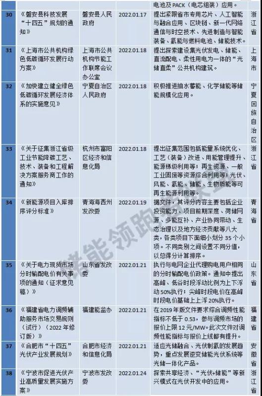 2022年1月4日,安徽省發(fā)改委發(fā)布《安徽省實(shí)施長(zhǎng)三角一體化發(fā)展規(guī)劃“十四五”行動(dòng)方案》,提出能源保供,積極爭(zhēng)取“外電入皖”,規(guī)劃建設(shè)長(zhǎng)三角皖北可再生能源生產(chǎn)基地和皖南綠色儲(chǔ)能基地,研究建立華東電網(wǎng)抽水蓄能共建共享機(jī)制,加強(qiáng)區(qū)域電力安全互濟(jì)互助。計(jì)劃開工阜陽氫能高效智能綜合利用產(chǎn)業(yè)基地等重大項(xiàng)目,計(jì)劃制定推動(dòng)長(zhǎng)三角垃圾焚燒發(fā)電市場(chǎng)化運(yùn)營實(shí)施方案,計(jì)劃出臺(tái)長(zhǎng)三角各省市加強(qiáng)應(yīng)急備用調(diào)峰電源能力建設(shè)實(shí)施方案和堅(jiān)強(qiáng)電網(wǎng)保障指導(dǎo)意見等。