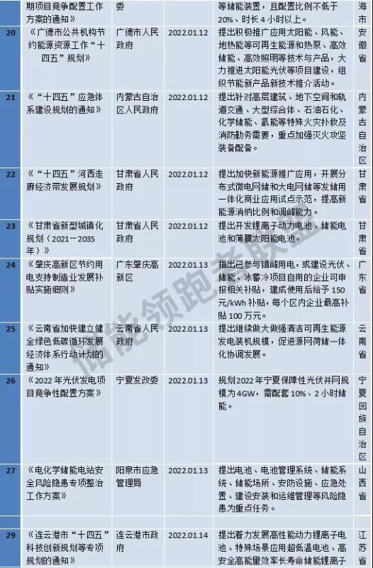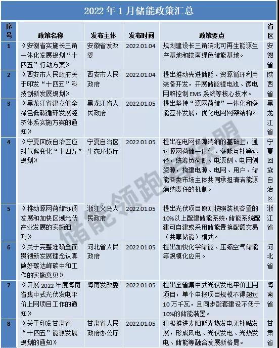 2022年1月27日,天津發(fā)改委發(fā)布《天津市可再生能源發(fā)展“十四五”規(guī)劃》,提出推動(dòng)儲(chǔ)能技術(shù)應(yīng)用,推廣“可再生能源+儲(chǔ)能”模式,新增集中式風(fēng)電、光伏發(fā)電項(xiàng)目原則上應(yīng)配套建設(shè)一定比例儲(chǔ)能設(shè)施,力爭(zhēng)儲(chǔ)能裝機(jī)規(guī)模達(dá)到50萬千瓦。