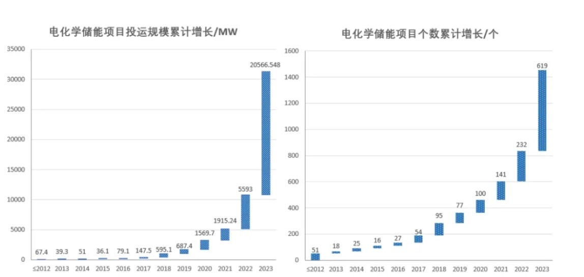 圖1 我國電化學(xué)儲能項目歷年投運(yùn)規(guī)模及數(shù)量增長情況