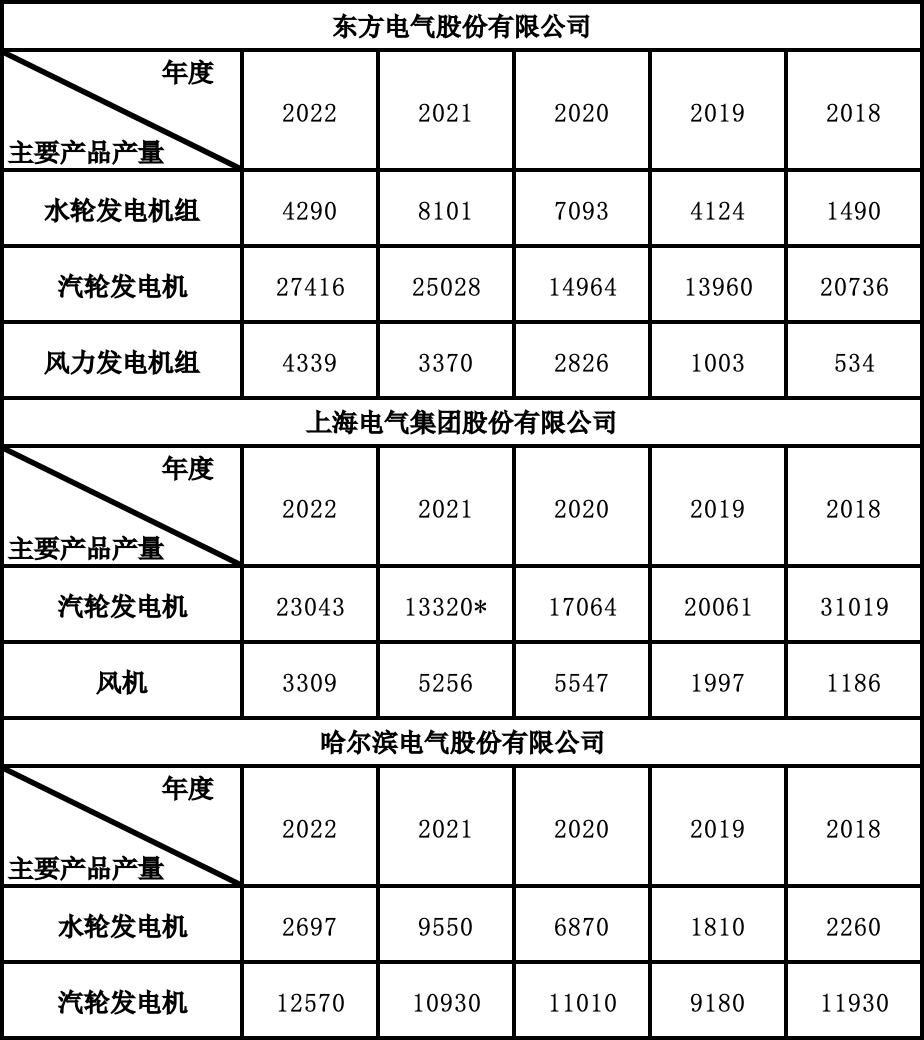 *上海電氣集團股份有限公司未披露2021年汽輪發(fā)電機銷量,數(shù)據(jù)根據(jù)2022披露的銷量與增長率計算得出。