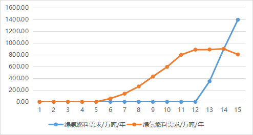 圖1 綠氫燃料替代需求(萬噸/年)