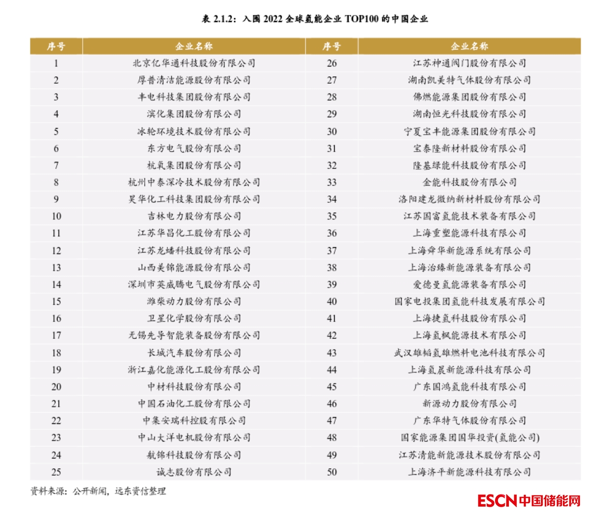 氫能產(chǎn)業(yè)鏈分別為上游制氫企業(yè)、中游儲運(yùn)商以及下游用氫企業(yè),包括加氫站的建設(shè)運(yùn)營商,氫能源汽車是目前我國氫能應(yīng)用最主要的領(lǐng)域,或也是未來氫能產(chǎn)業(yè)最重要的應(yīng)用發(fā)展方向。2022 年 11 月 16 日,第二屆氫能國際(中國·南海)主題峰會在線上舉行。在會上發(fā)布了 2022 全球氫能企業(yè) TOP100 榜單,評分方式主要采用定性分析 和定量分析相結(jié)合的方法進(jìn)行研究,最終評選出國外50家氫能、國內(nèi)50家氫能企業(yè)進(jìn)入“2022全球氫能企業(yè)TOP100” 榜單。