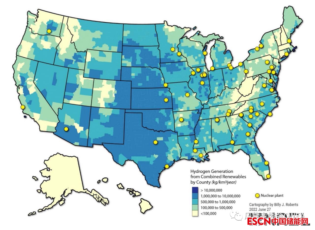 美國潛在氫能產(chǎn)能分布